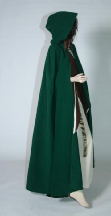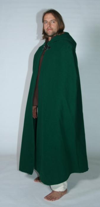 Lång medeltida yllemantel i tungt material med remknäppning i halsen. Yllemanteln (80% ull, 20% polyamid) är perfekt för höst- och vintersäsongen men ger även välkommen värme under svala sommarkvällar.